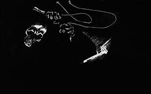 Montreal-born Marcel Barbeau was a multi-disciplinary artist and prominent member of the Automatiste movement. Originally a student of furniture design, Barbeau switched into fine art and began paying regular visits to the studio of Automatiste leader, Paul-Émile Borduas. He became one of the signatories of the "Refus global" manifesto. During this period Barbeau painted Rosier-feuilles, a magnificent abstract work of swirling, crackling white lines that anticipated the drip paintings of Jackson Pollock. Barbeau generously allowed Volcano Theatre to use this painting in Century Song.