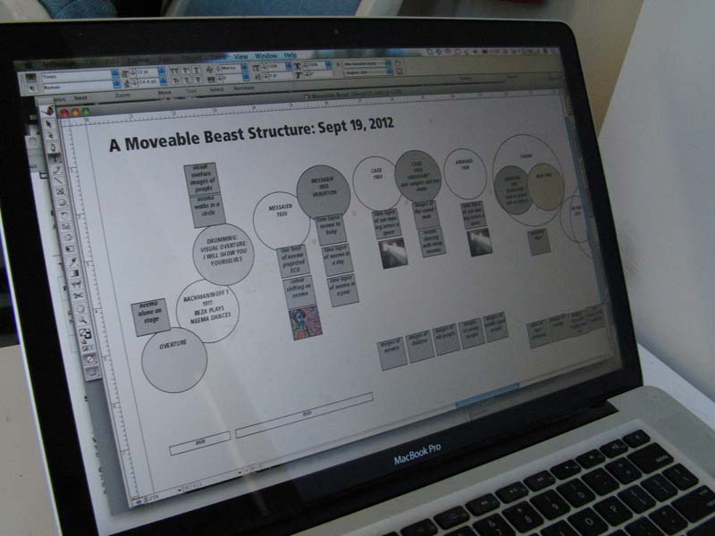 When I contacted Quebec Automatiste Marcel Barbeau (who passed away just a few weeks before our Toronto premiere, at the age of 90) to ask permission to use Rosier-feuilles in the show, I was amazed at the generosity he and his wife Ninon Gauthier showed us. Ninon wrote to me: "Marcel, who has always been involved in transdisciplinary since the mid forties, is very enthusiastic about your project." I felt a connection to a tradition of cross-disciplinary art in this country I previously knew nothing about. These connections across time are important. I am delighted I was given the chance to learn of this artist and the movement he was a part of. I am saddened he was too unwell to travel to Ottawa to see the show (they sent friends in their stead, who, apparently, loved it), and that now, we are without him. The support and kindness that both Ninon and Marcel showed us has meant a great deal.